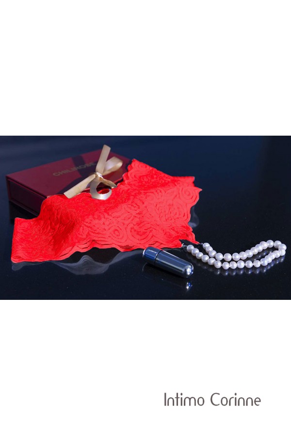 Tanga in pizzo con perle naturali + mini stimolatore. Rosso