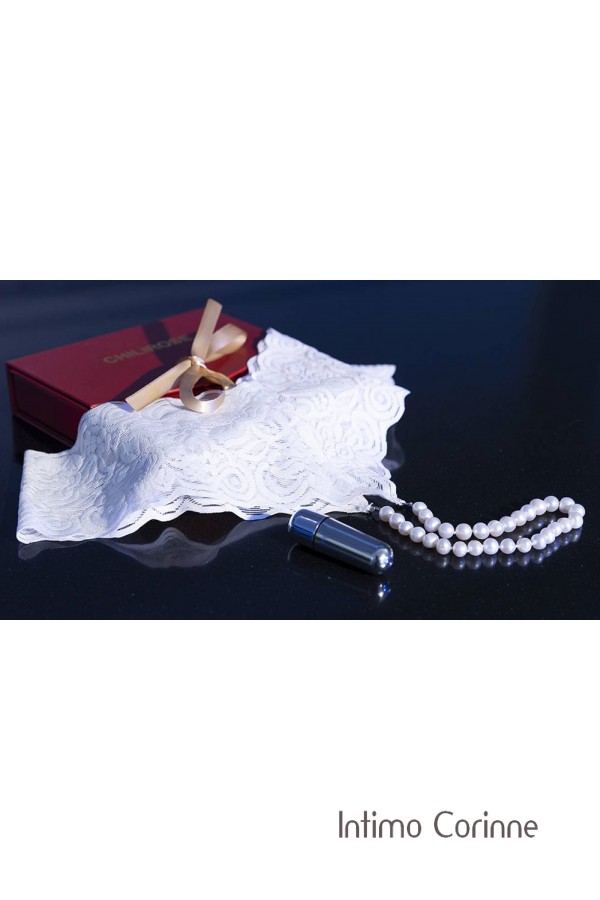 Tanga in pizzo con perle naturali + mini stimolatore. Bianco