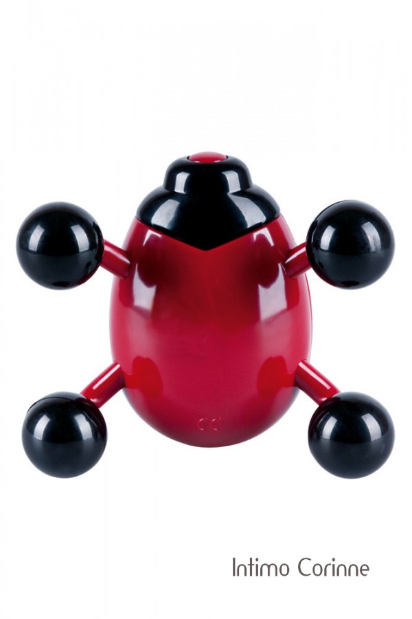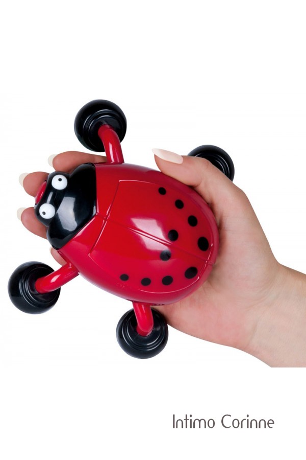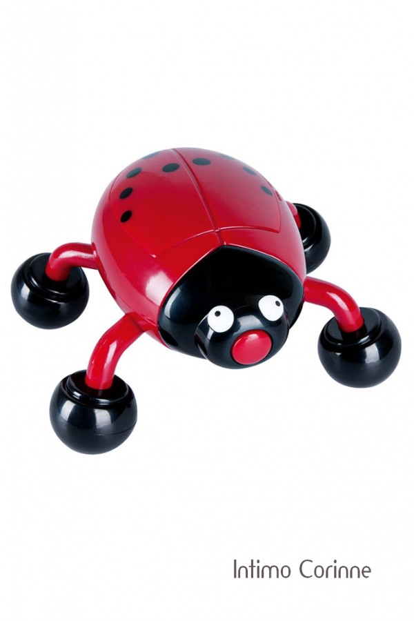 Simpatico attrezzo vibrante a forma di coccinella con zampe rotonde per massaggiare ogni zona del corpo. Si accende premendo sul naso. Funzionamento con 2 batterie stilo non incluse.