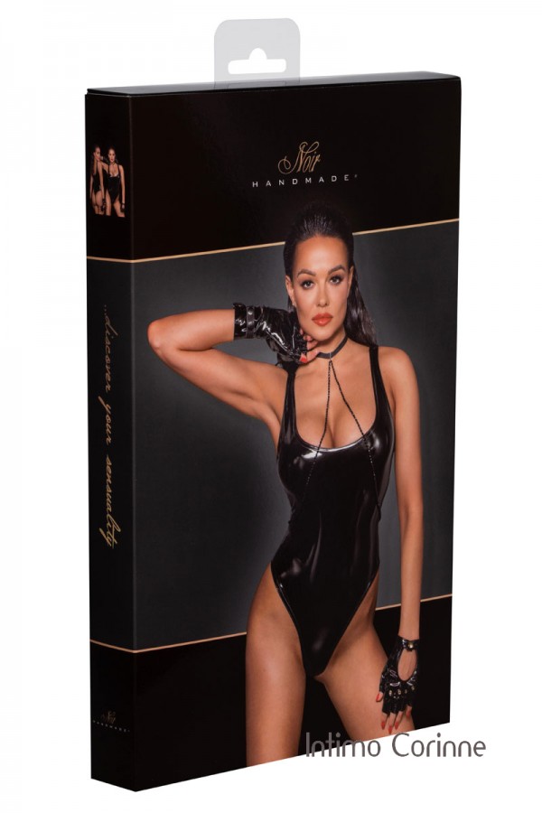 Body sgambato in PVC con taglio posteriore a tanga. La quintessenza dell'abbigliamento fetish/kink.