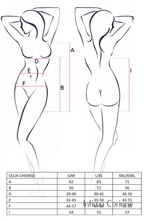 Chemise in morbida microretina impreziosita da inserti in lycra, merletti e da un fiocchetto centrale, le spalline sono regolabili. Chiusura posteriore tramite gancetto con apertura sottostante sulla schiena. Tanga in coordinato