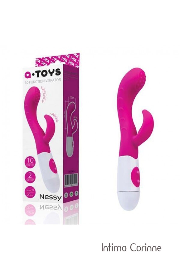 Originale stimolatore in silicone medico di alta qualità, soffice al tatto (velvet touch), caratterizzato dalla testa leggermente ricurva con puntini in rilievo che sollecitano dolcemente il punto G e da una piccola lingua in grado di regalare una sensazione di 'carezza clitoridea' aprendo nuove sfaccettature di piacere. Una vasta gamma di modalità di emissione delle vibrazioni raccoglierà quella perfetta per il tuo stato d'animo grazie a una potente vibrazione destita da due motori incorporati nelle due estremità. Due piccoli pulsanti in silicone ti permetteranno di controllare facilmente il dispositivo in modo intuitivo! Lunghezza totale 20 cm, lunghezza utile 9,5 cm, diametro 3,3 cm. Funziona anche sotto la doccia. Necessita di 2 pile mini stilo (AAA) non incluse.