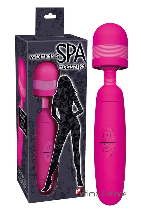 Massaggiatore stimolante rosa con estremità mobile a forma di fungo. Sette livelli di vibrazione regolabili tramite pulsante.