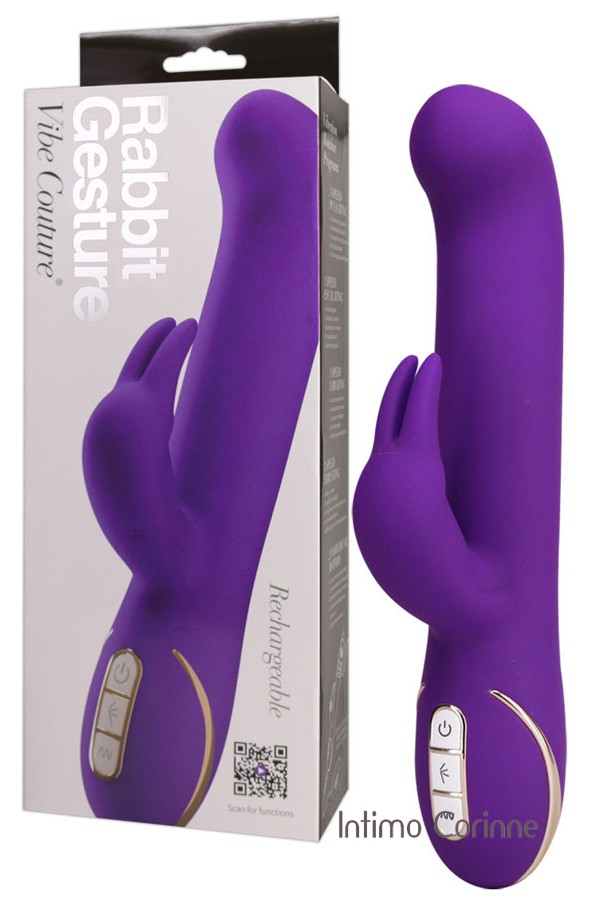 Stimolatore ricaricabile di colore viola, impermeabile, con parti decorative argentate. Estremità leggermente ricurva movibile. Annesso lateralmente ulteriore stimolatore a forma di coniglietto. Estremamente realistico, grazie al silicone a doppio strato, con sette livelli di vibrazione. Ricaricabile tramite il cavo USB in dotazione. (Tempo di ricarica 2,5 ore).