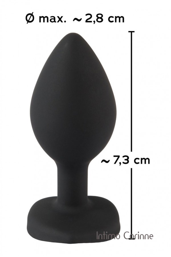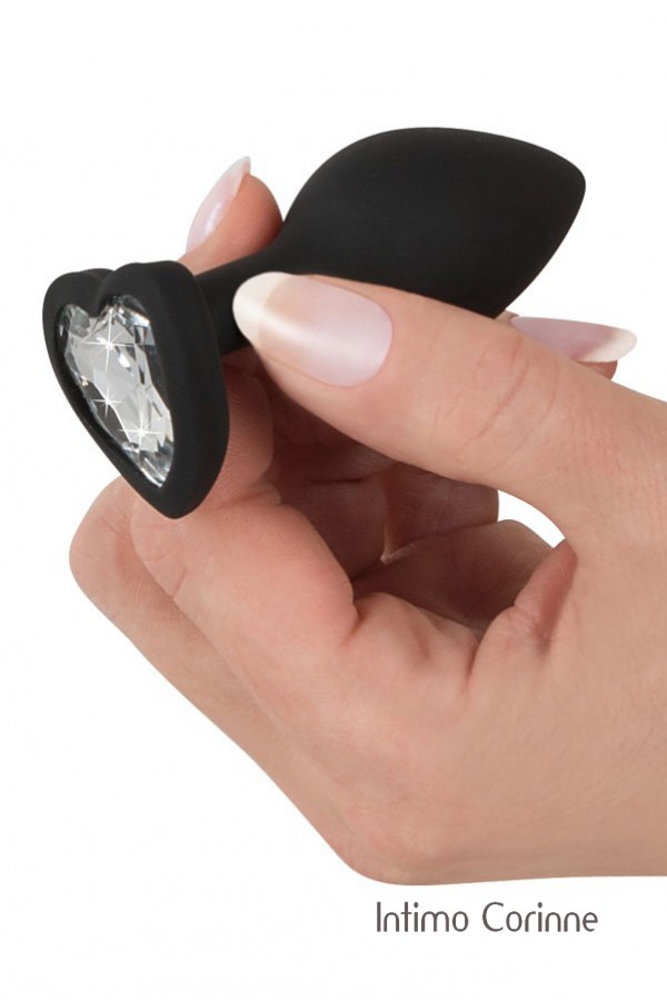 Morbido plug anale impreziosito da una gemma a forma di cuore sul tappo. Perfetto per i principianti perché piccolo e leggero. Lunghezza completa 7,3 cm, lunghezza di inserimento 6,2 cm, Ø 2,8 cm. Materiale: silicone, PU, acrilico.