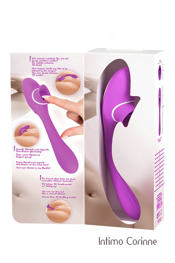 Stimolatore flessibile doppia funzione con lingua rotante.