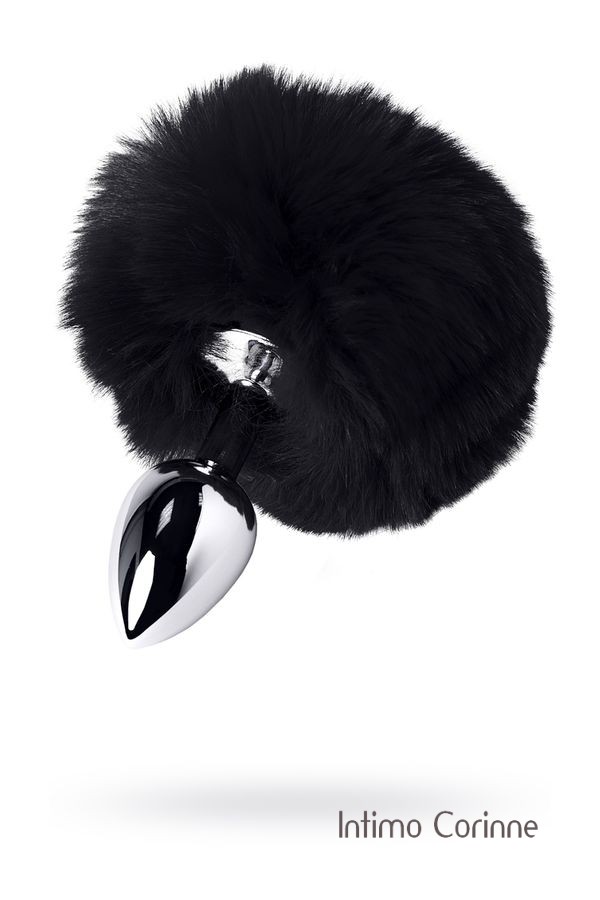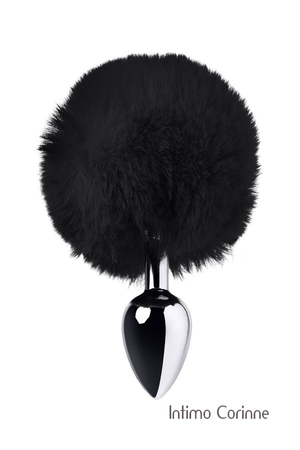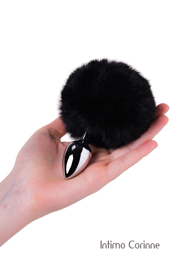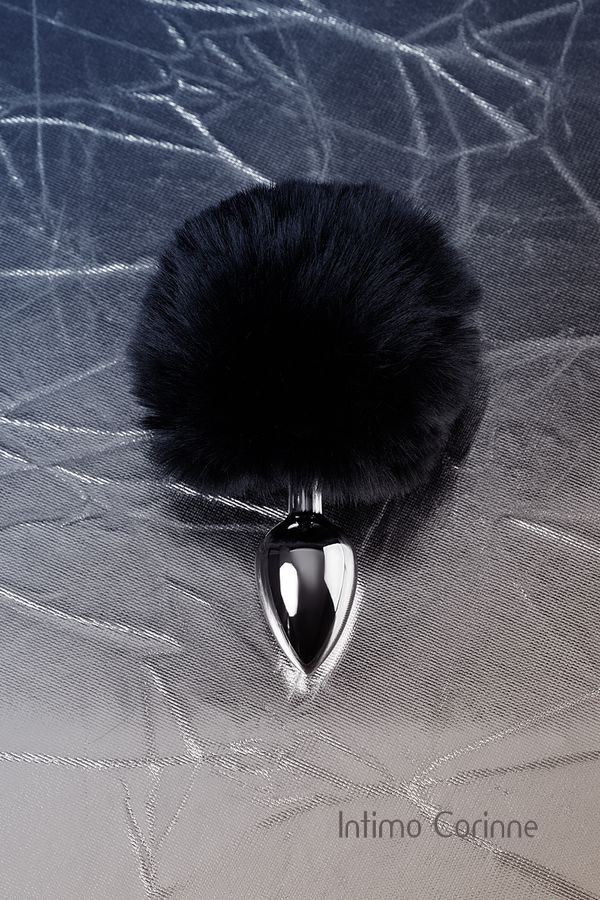 Originale plug in metallo argentato di medie dimensioni con ponpon nero molto soffice al tatto, effetto codino. Le dimensioni ridotte consentono di indossare questo giocattolo anche per i principianti. Lunghezza 12 cm, diametro 3 cm.