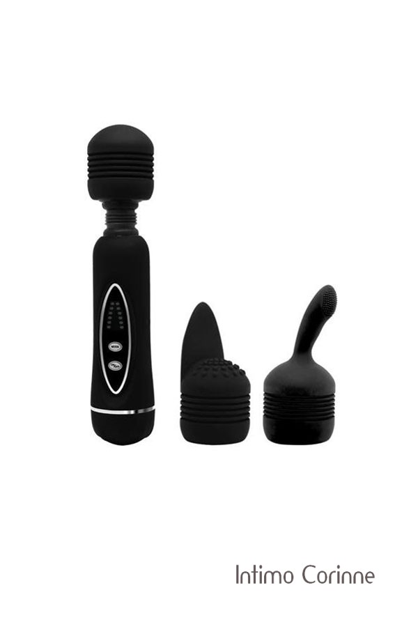 Massaggiatore magico Power Wand con 3 cappucci.