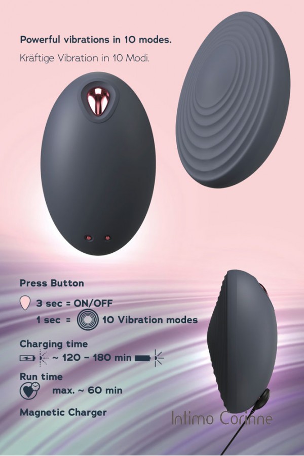 Oh, là, là! Il pratico e leggero stimolatore da appoggio Oh! by You2Toys vi delizierà con il suo design scanalato che coccola intensamente il clitoride in particolare, ma anche tutti gli altri punti caldi esterni. La sua forma curva sta comodamente in mano e le ben 10 modalità di vibrazione possono essere controllate comodamente premendo un pulsante, per un piacere sempre diverso. Il vibratore lay-on, morbido come la seta, può essere perfettamente integrato in qualsiasi rapporto amoroso, da soli o in coppia. Anche nella vasca e nella doccia perché è impermeabile! Ricaricabile - Cavo di ricarica USB incluso. Dimensioni 8 x 5,1 x 4 cm. Peso 80 g. Materiale: ABS, silicone, PU.
