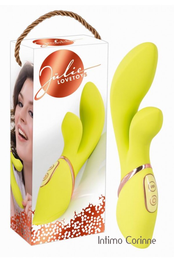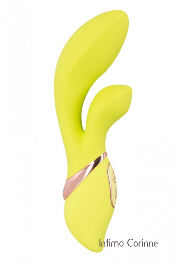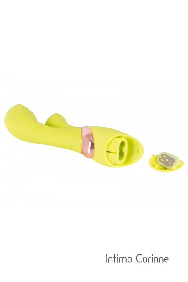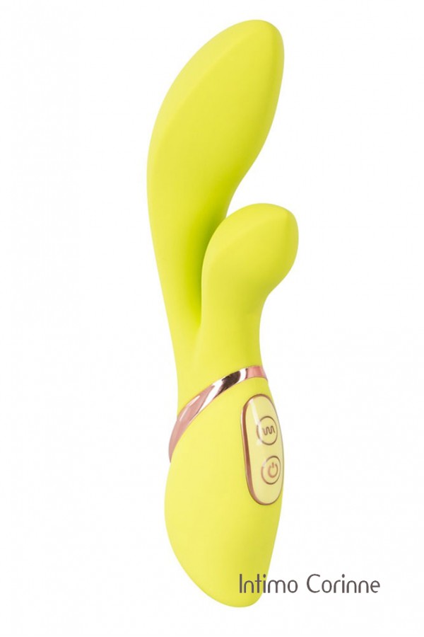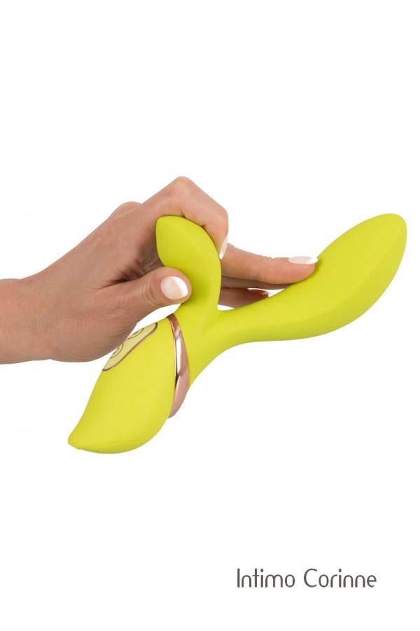 Stimolatore con due diramazioni leggermente flessibili, entrambi con il proprio motore. Superificie molto morbida con sette modalità di vibrazione. Colore lime.