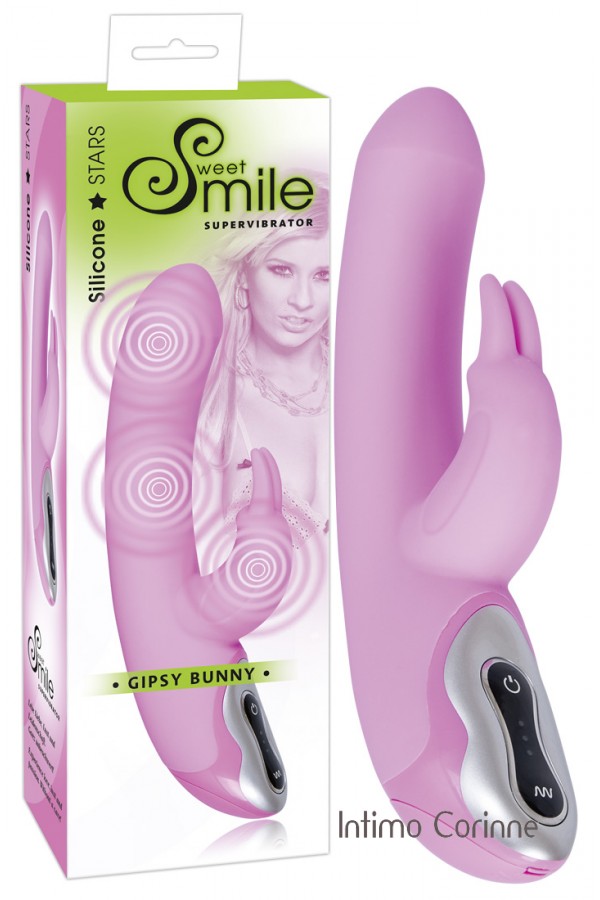 Stimolatore con tre potenti motori silenziosi che si trovano nella parte inferiore e prolungamento laterale (lunghezza 8 centimetri) a forma di orecchie flessibili per un massaggio completo. 7 livelli di vibrazione da impostare mediante la pressione di un pulsante e 3 led che segnalano l'accensione di ciascun motore. Totale lunghezza 24 cm, ø 3,5 e 4,5 cm. Materiale: silicone, ABS, senza ftalati secondo il Regolamento REACH dell'UE. (Si prega di ordinare batterie separatamente: 3 x ministilo / AAA).