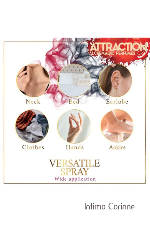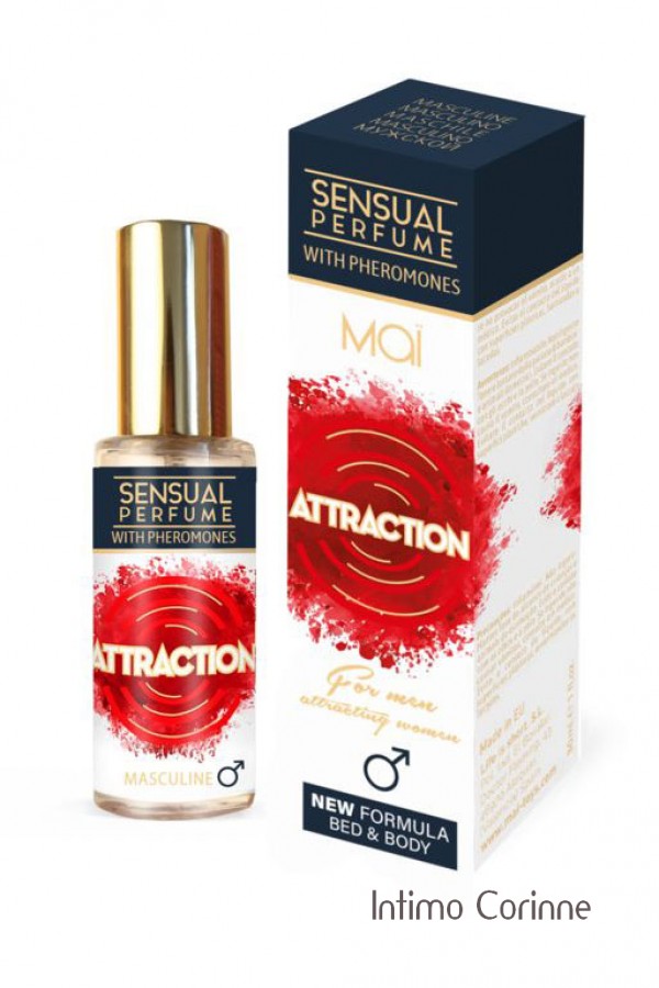 PROFUMO UOMO della linea MAI Attraction che attiva i sensi erotici delle donne. Il profumo sensuale con feromone ti aiuterà ad attrarre il tuo partner ed essere più attraente. Il profumo unico e seducente di gelsomino, pompelmo e foglie di alloro stimola e rafforza la sessualità femminile rendendola inarrestabile. Spray versatile che puoi usare su collo, mani, caviglie, lobo dell'orecchio, letto o vestiti.