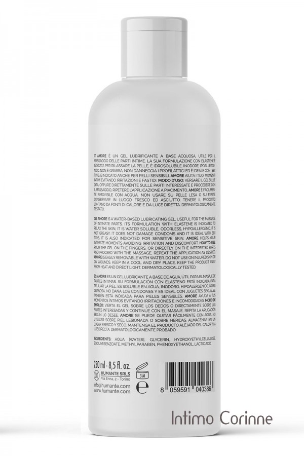 Gel lubrificante AMORE interamente prodotto in italia. Si utilizza per il massaggio e la lubrificazione delle parti intime, è a base acquosa, non grassa, idrosolubile, inodore, delicato su pelli sensibili, ipoallergico, non danneggia i preservativi ed è ideale per i sex toys. Aiuta i tuoi rapporti intimi evitando fastidi ed irritazioni. Istruzioni per l’uso: versa il gel sulle dita e applicalo sulle parti interessate oppure versalo direttamente. Ripeti l’applicazione a tuo piacimento, per rimuoverlo basta semplicemente dell’acqua. Conservare in ambiente fresco e asciutto, lontano da luce diretta e fonti di calore.