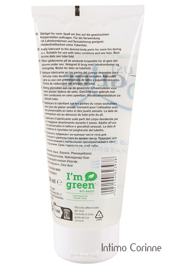 Il lubrificante a base d'acqua Just Glide fornisce una lubrificazione di lunga durata con una formula di alta qualità (100% vegana). È adatto anche alle pelli sensibili ed è stato testato dermatologicamente come indicato dal sigillo di qualità tedesco "sehr gut" (molto buono). Non contiene oli e non unge, si lava via facilmente ed è sicuro da usare con i preservativi in lattice. Inodore e insapore. Flacone da 200 ml.
