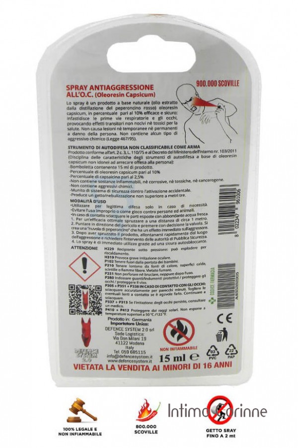 - Lo Spray al Peperoncino di Defence System è 100% Legale anche perchè Non è infiammabile!