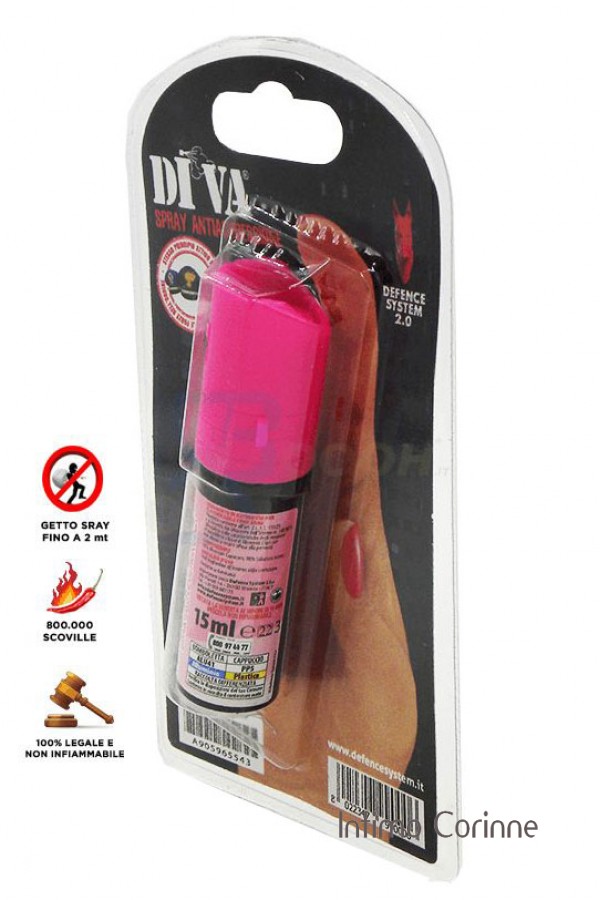 Il Blister comprende una bomboletta DI.VA progettata dalla Defence System che contiene 15ml di prodotto.