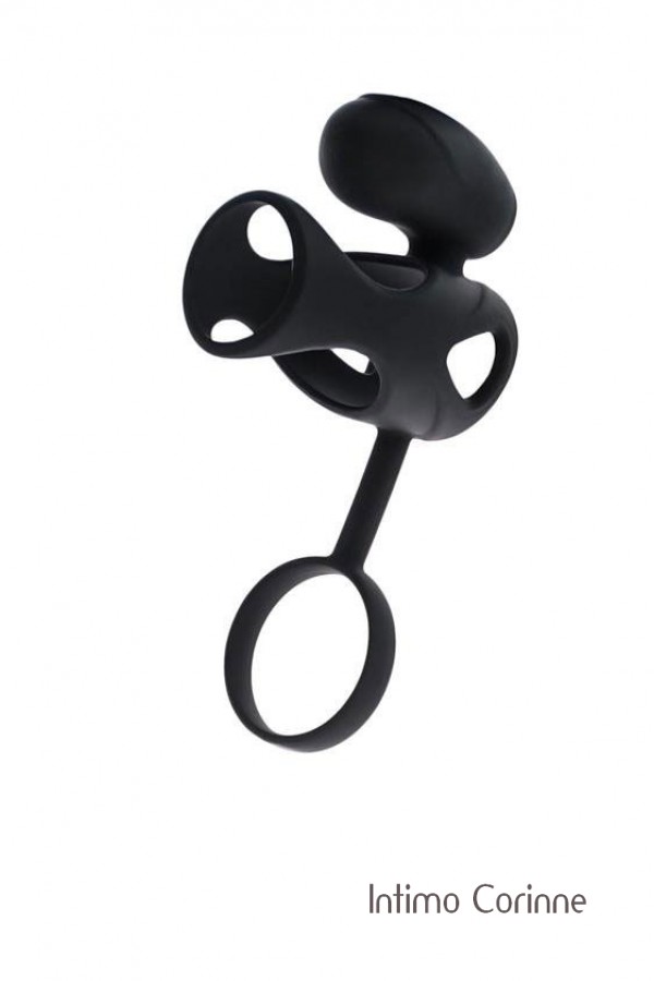Guaina maschile con inserto vibrante per la stimolazione clitoridea ed anello per i testicoli. L'azione di anelli e guaine permettono un maggior afflusso di sangue garantendo maggior erezione e durata. L'aggiunta dell'inserto vibrante contribuisce a stimolare anche la partner per un coinvolgimento totale e garantito. Realizzato totalmente in silicone nero. Resistente alla doccia. Munito di 3 batterie a bottone di tipo AG13 (incluse).