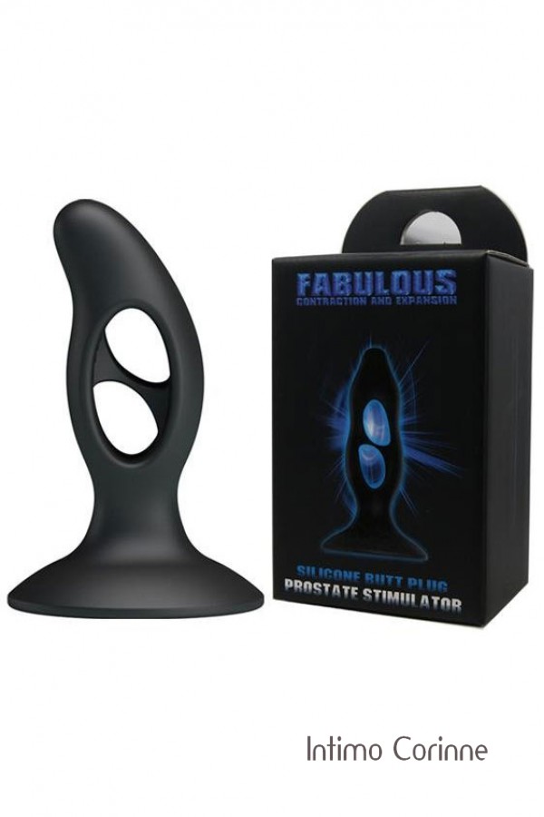 Plug in silicone nero per la stimolazione della prostata realizzato con una tecnologia innovativa che permette la contrazione ed espansione in base alla resistenza esercitata. Lunghezza 9,4 cm. Diametro 3 cm.