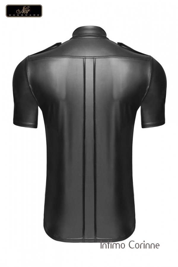 Elegante e sexy camicia uomo realizzata in morbido tessuto lucido elasticizzato effetto bagnato. Due tasche sul petto anteriore. Un capo esclusivo di alta qualità della collezione Noir Handmade prodotto in Europa. Ottenibile anche in numerose taglie comode.