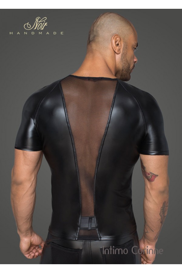 Attraente maglietta realizzata in tessuto effetto bagnato (powerwetlook) con inserti in morbida rete 3D che mette in risalto il petto e le spalle.