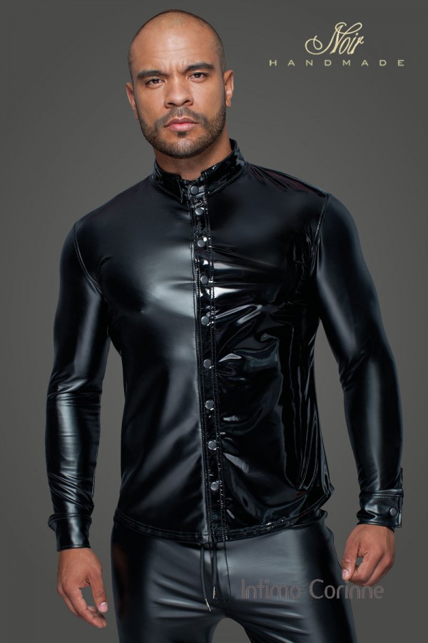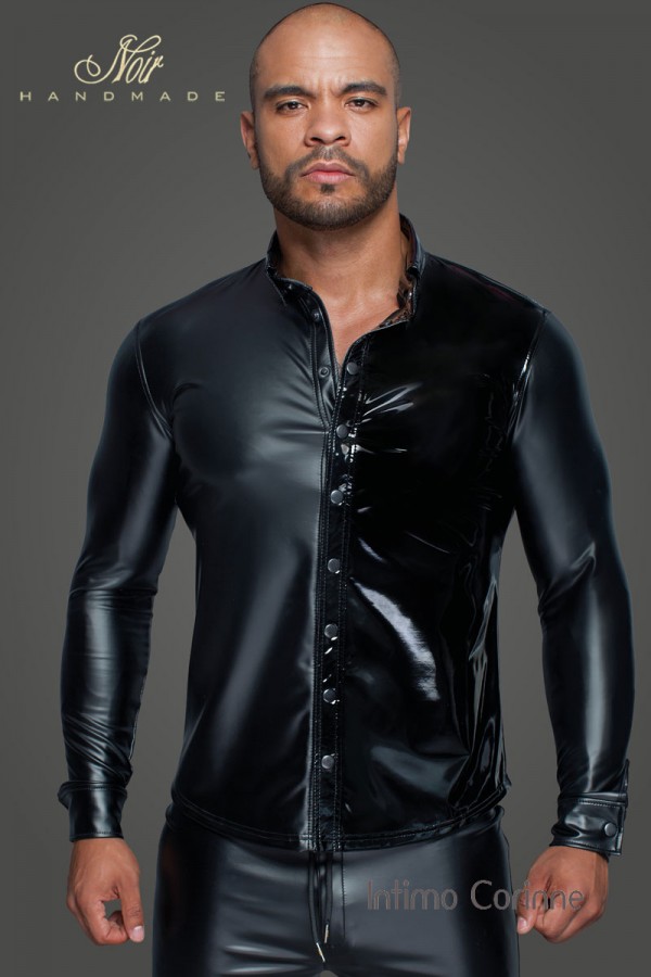 Camicia uomo maniche lunghe in Powerwetlook e PVC.