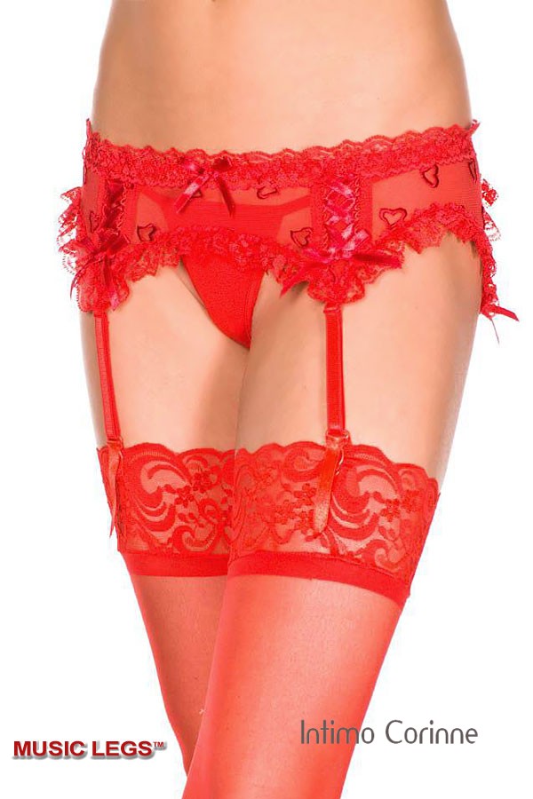 Music Legs: reggicalze in microrete e pizzo con cuoricini.