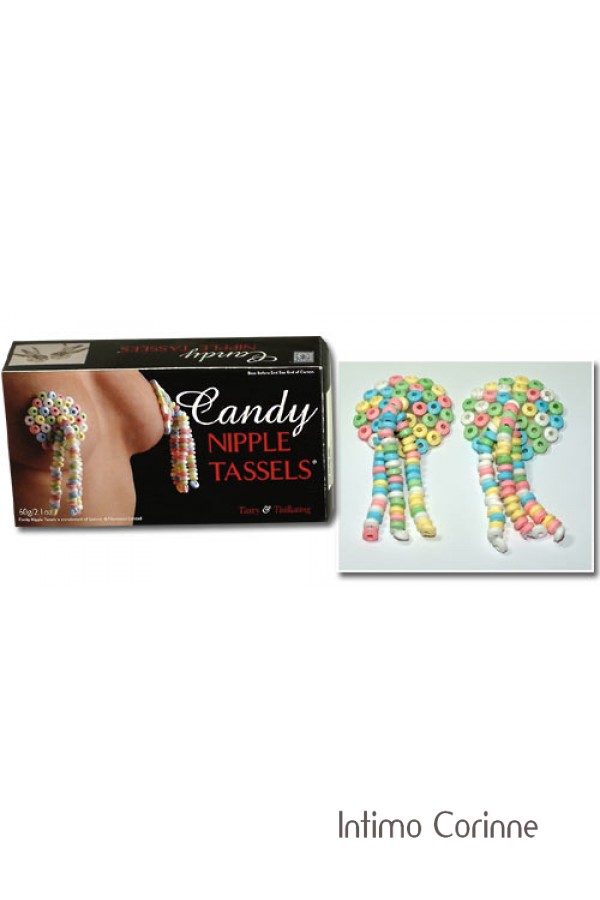Copricapezzoli formati da perline di zucchero colorate da sgranocchiare in un "dolce" gioco... Include strisce biadesive per fissarli al seno.