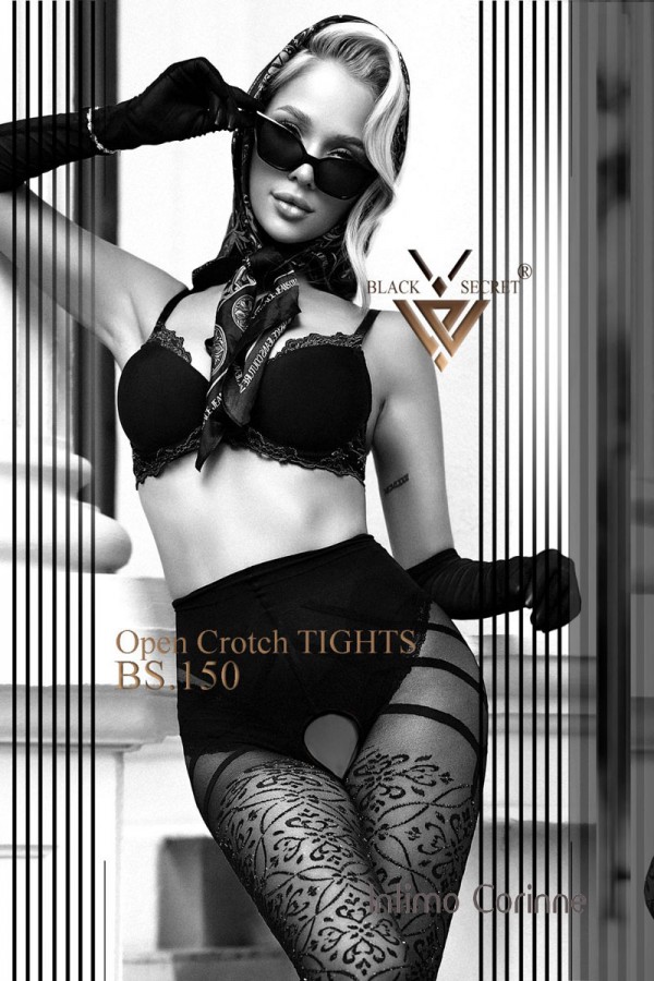 Collant aperto con ricami rossi e lurex. Art. BS170