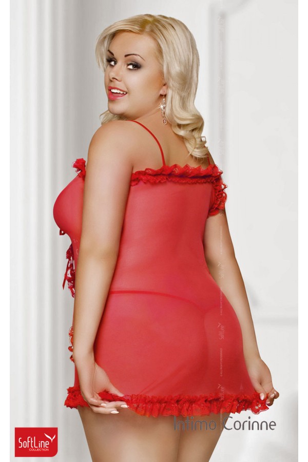 Softline - Babydoll in tulle con merletti e perizoma Kaya rosso