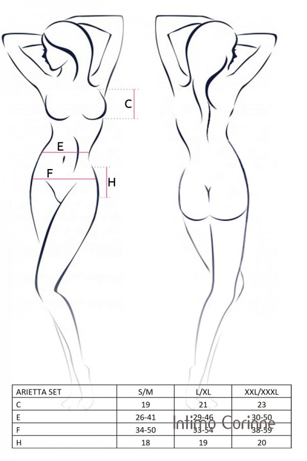 Completino 3 pezzi in morbida lycra e microrete arricchito da arricciature composto da reggiseno, reggicalze e perizoma in coordinato.
