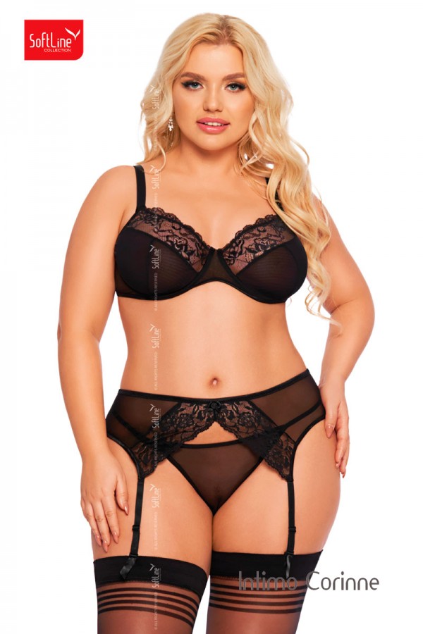Intimo 3 pezzi in tulle con pizzo. Plus Size
