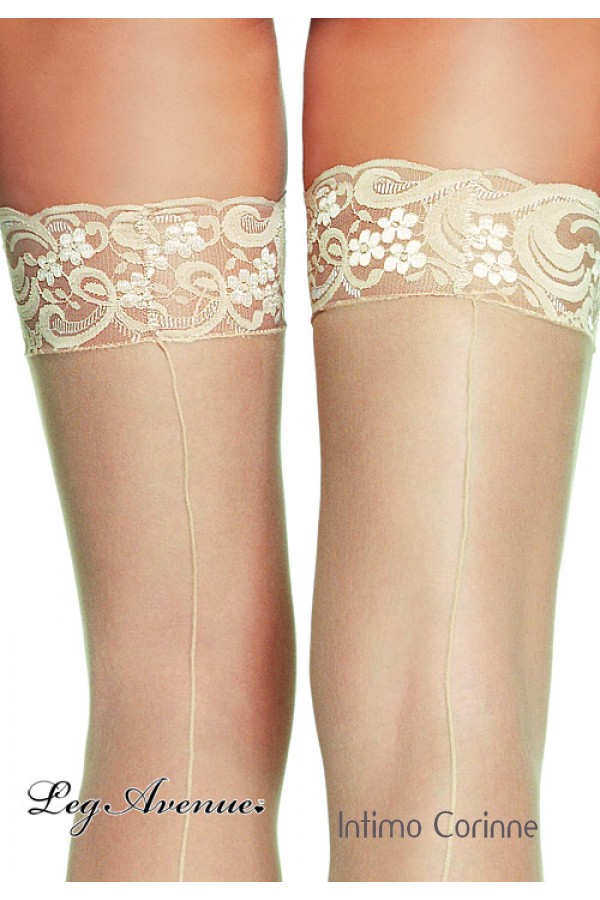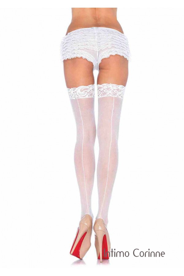 Classiche calze da reggicalze con preziosa balza in pizzo alta circa 8 cm. e riga di cucitura posteriore. Colore bianco (no avorio).