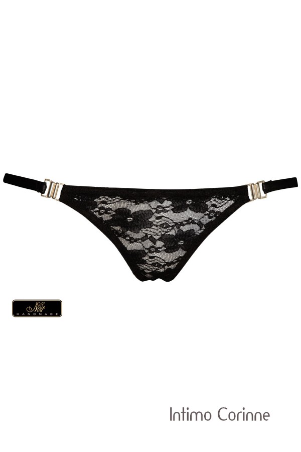 Perizoma effetto push-up realizzato in morbido pizzo con fianchetto e bordi in tessuto lucido effetto bagnato. Comodi gancetti laterali ne permettono la rapida apertura da entrambi i lati. Un capo esclusivo di alta qualità della collezione Noir Handmade prodotto in Europa. Ottenibile anche in numerose taglie comode.