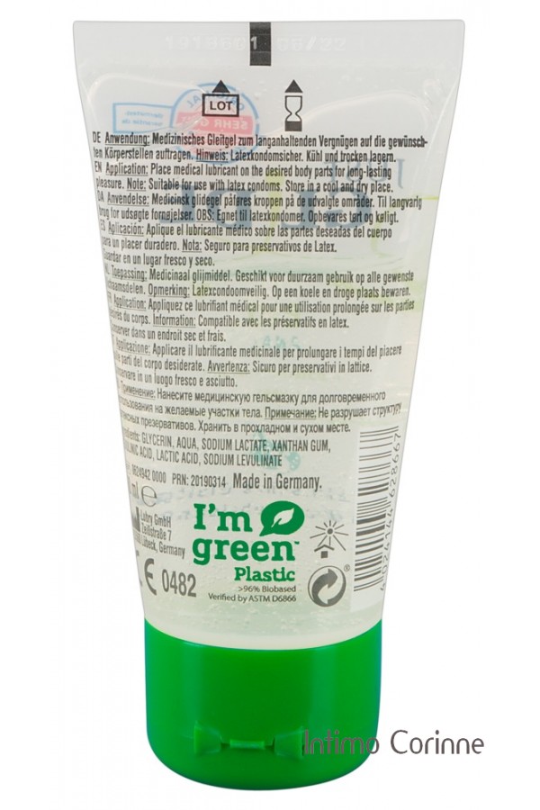 Lubrificante biologico naturale a base d'acqua, 100% vegano. Flacone compostabile in polietilene a base di canna da zucchero. La formula neutra ed inodore è sicura da usare con i preservativi in lattice. Privo di olio e grasso, può essere lavato via senza lasciare macchie o residui. Tubo da 50 ml.