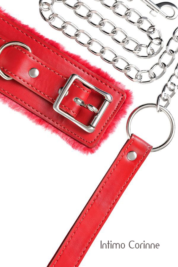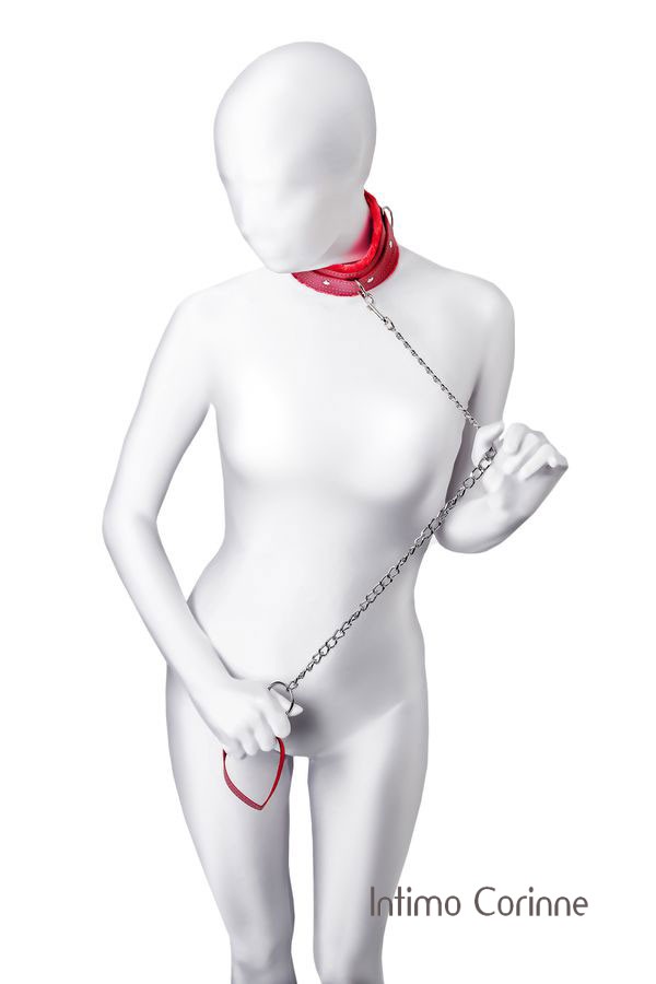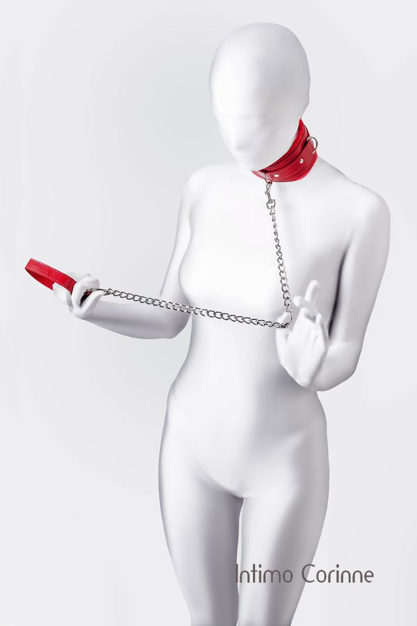 La larghezza del colletto è di 4,5 cm, la lunghezza della catena con un moschettone è di 50 cm. La dimensione è universale e regolabile tramite fibbia. Uno degli attributi principali del BDSM.