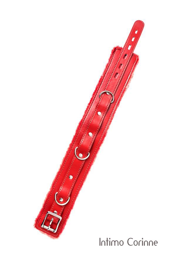 Stupendo collare rosso, realizzato in vera pelle con fodera in velluto. Nella produzione sono stati utilizzati raccordi nichelati migliorando così le sue prestazioni di resistenza e durabilità.