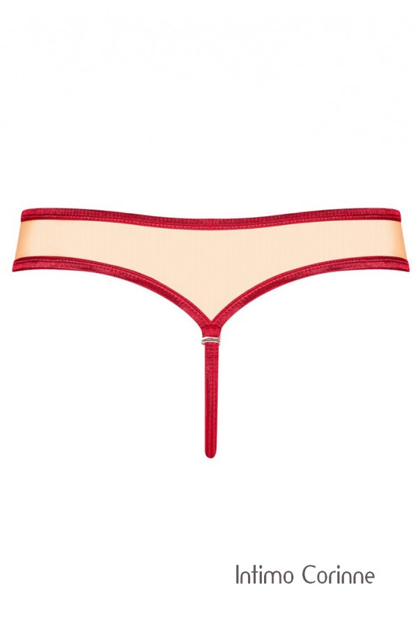 Tanga rosso con fiocco e tulle color pelle.