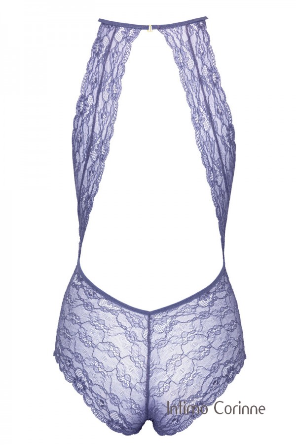 Esprimiti con uno stile esclusivo grazie a questo body interamente realizzato in fine pizzo color lavanda. Il design è caratterizzato da tagli audaci e generosi, sia sul davanti che sul retro, che valorizzano la silhouette con un gioco di trasparenze sofisticato.