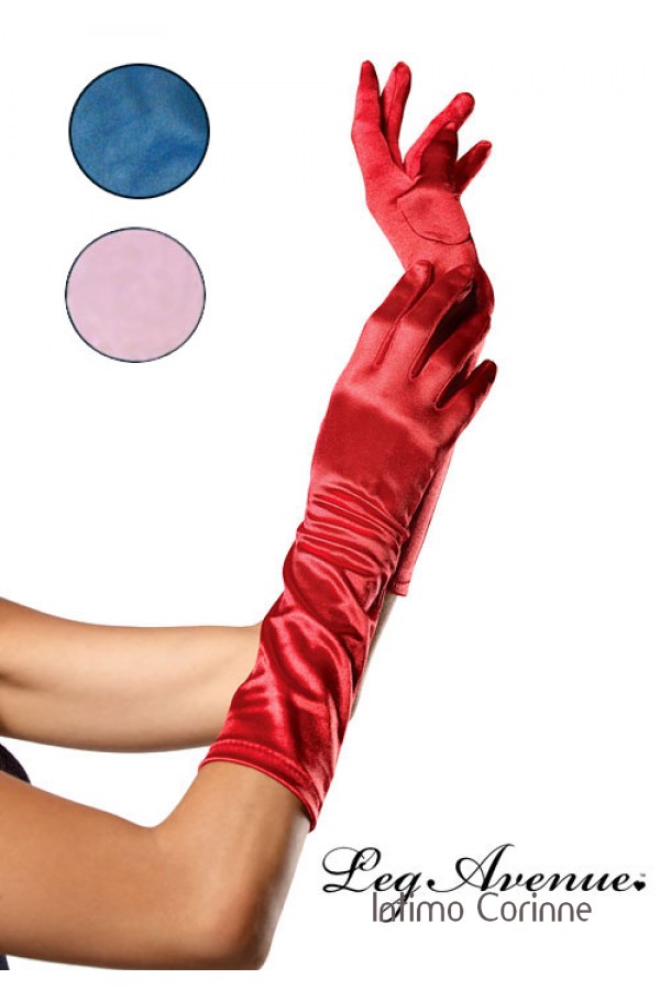 Guanti in raso lunghezza media. Disponibili in diversi colori.