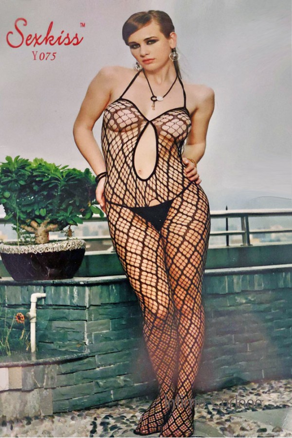 Bodystocking a rete aperta al cavallo con perizoma.